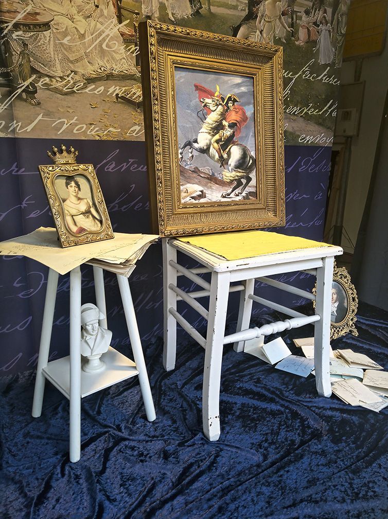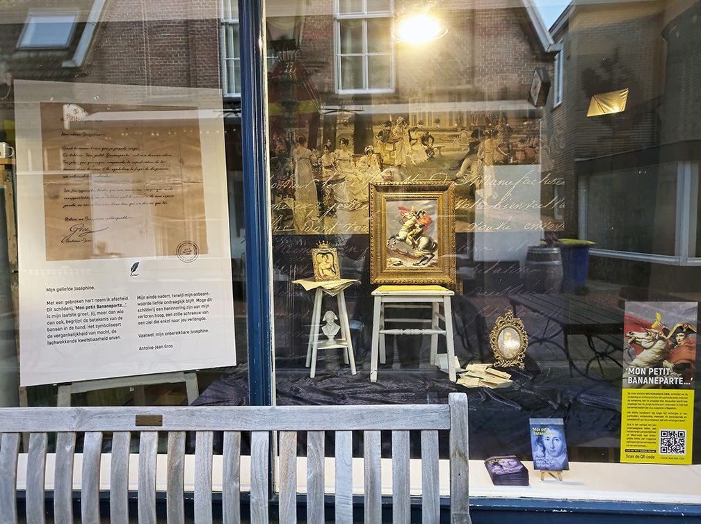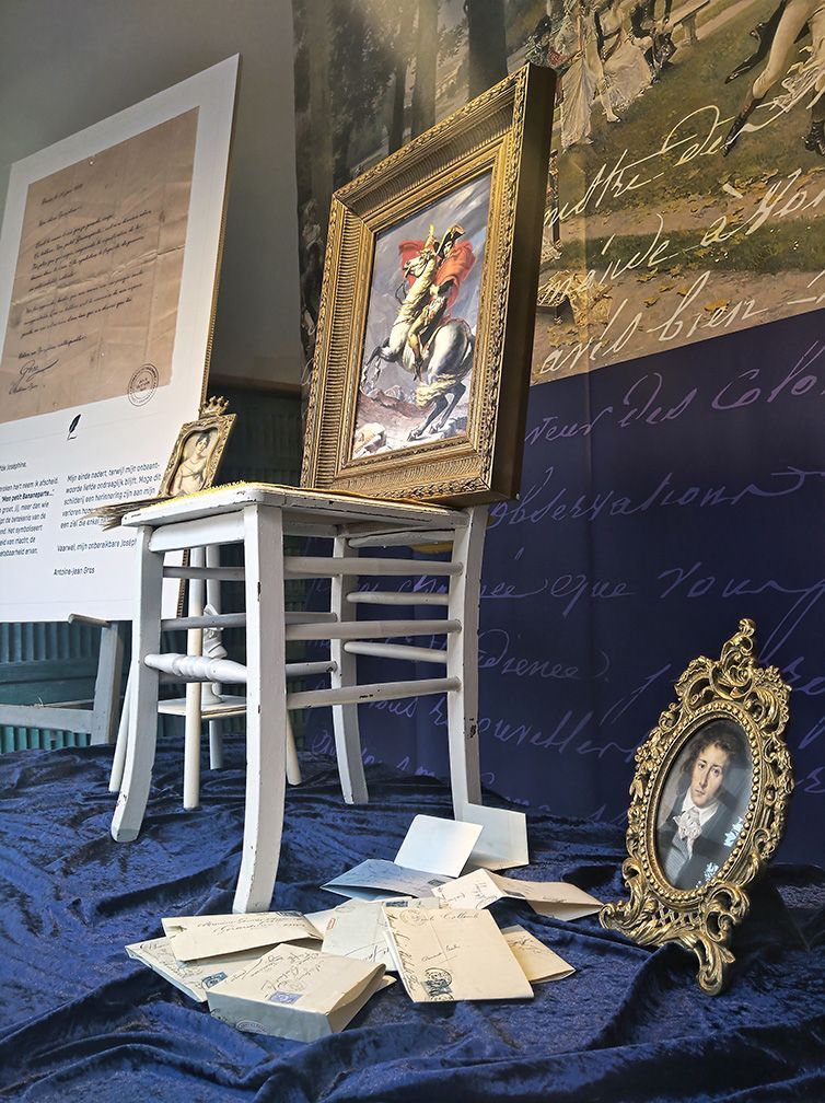 Gros is ziek van de liefde en schrijft Joséphine talloze liefdesbrieven. Hij krijgt net als vele andere aanbidders nooit een antwoord van Joséphine. Bovendien, wat moet een door de wol geverfde vrouw van haar stand met een amusant hofschildertje? Dit spanningsveld is de voedingsbodem voor het schilderij ‘Mon petit Bananeparte…